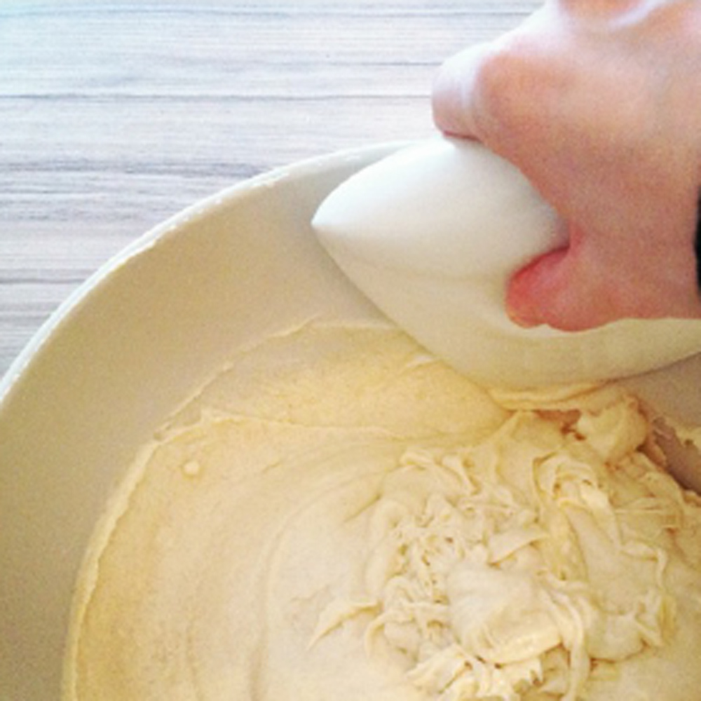 Der Teigschaber ist ein idealer Küchenhelfer, um Teig aus der Schüssel zu entfernen. Das flexible Material passt sich jeder Wandung und jedem Winkel an.